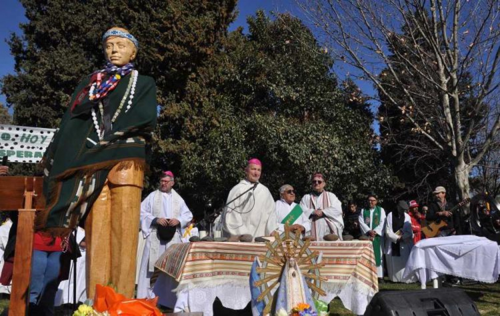 La celebración fue presidida por el obispo Esteban Laxague SDB (Viedma), y concelebrada por los obispos Alejandro Benna (Alto Valle del Río Negro) y Juan Carlos Ares (San Carlos de Bariloche), y por sacerdotes que se acercaron de distintas partes de la región y del resto del país.